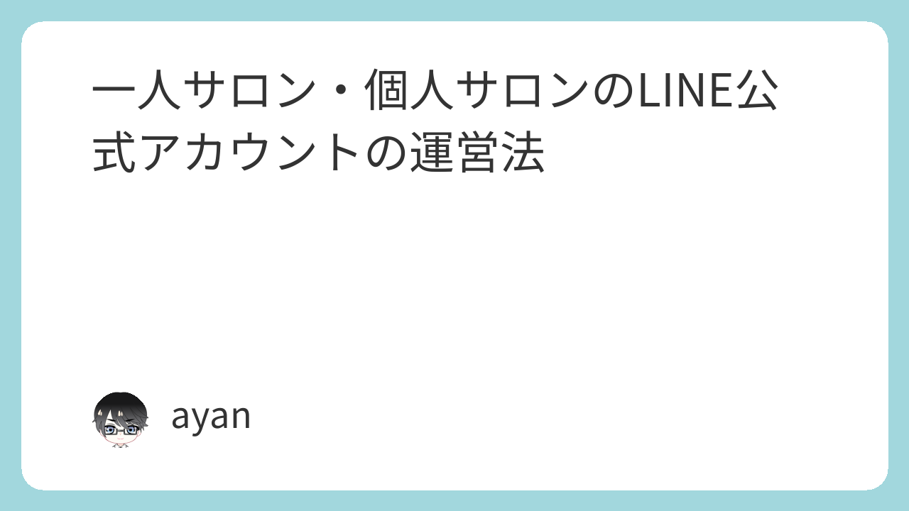 一人サロン・個人サロン向けに、LINE上で自動予約受付が可能なチャット予約システムを開発・運用しています、ayan(えーやん)と申します。